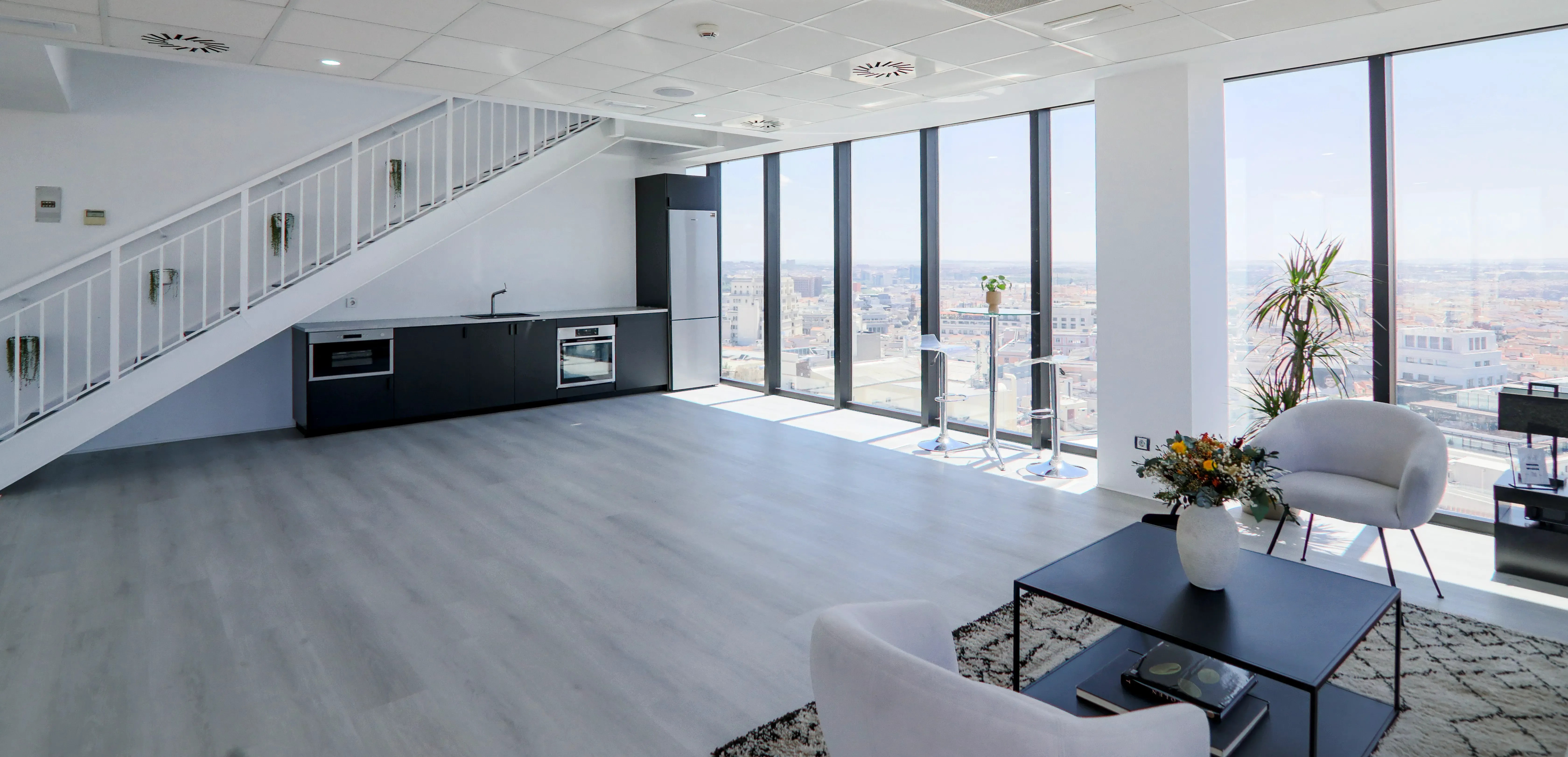 Espacio Aster es un espectacular rooftop para eventos en Madrid, diseñado para acoger experiencias corporativas, presentaciones de producto y acciones de marca en un entorno contemporáneo, luminoso y con vistas 360º a la ciudad. Su ubicación en pleno centro de Madrid lo convierte en uno de los espacios para eventos corporativos más atractivos para empresas que buscan sorprender.