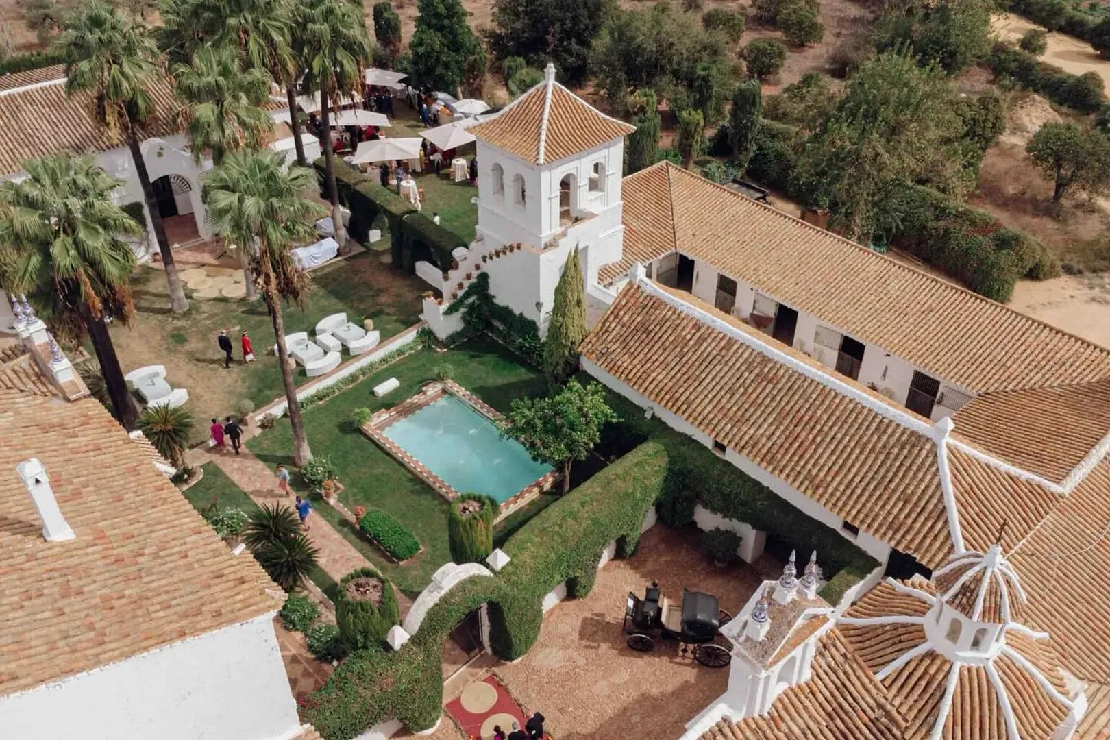 Ubicada a tan solo 20 minutos del centro de Sevilla, Hacienda Los Miradores es un espacio emblemático que conserva todo el encanto de la arquitectura andaluza y el espíritu de las grandes celebraciones. Rodeada de olivares y naturaleza, esta finca centenaria ofrece un entorno incomparable para bodas, eventos corporativos, rodajes y celebraciones privadas.