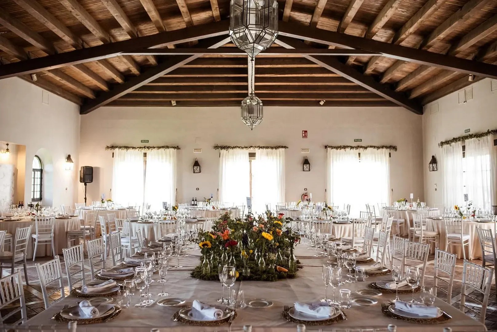 El espacio cuenta con múltiples zonas diferenciadas: un amplio patio central, jardines frondosos, zonas cubiertas y salones interiores que se adaptan a diferentes formatos de montaje. Su cuidada estética combina lo tradicional con un equipamiento moderno que garantiza comodidad y funcionalidad.