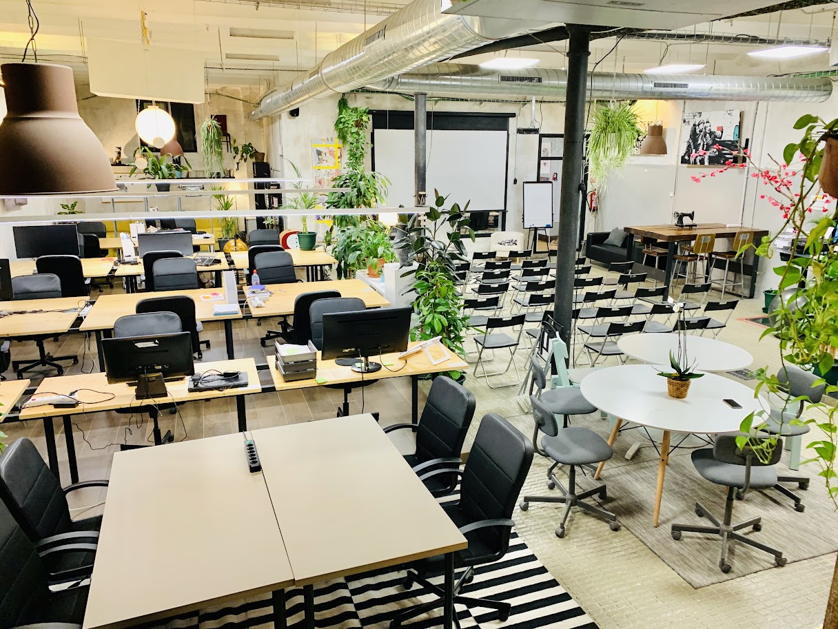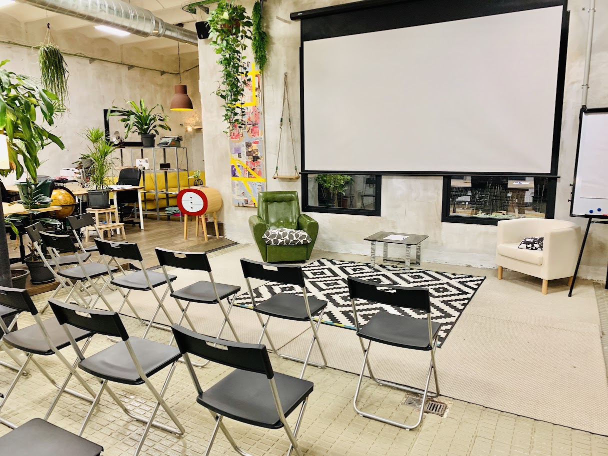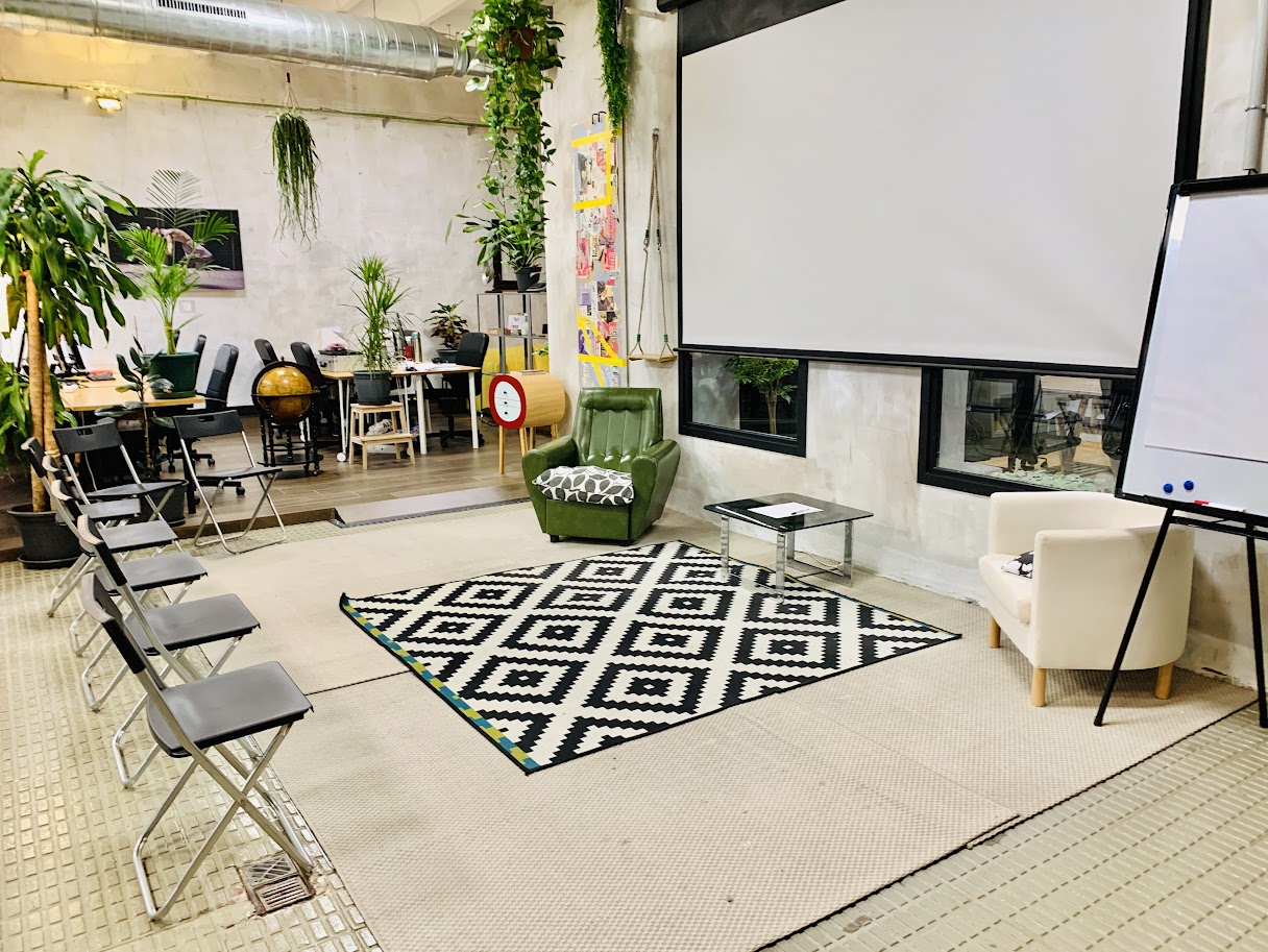 La Sala Principal de La Vaca Coworking es un espacio polivalente para eventos en Barcelona, perfecto para conferencias, talleres creativos, presentaciones de producto y networking. Disponible los fines de semana, este amplio venue destaca por su luz natural, ambiente inspirador y diseño funcional que lo convierte en una excelente elección para organizar eventos profesionales con carácter.